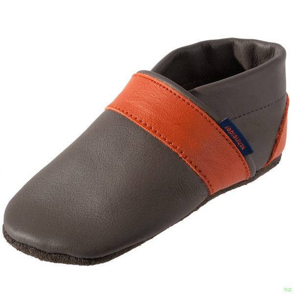 Lederpuschen, uni oder mit abgesetztem Streifen.